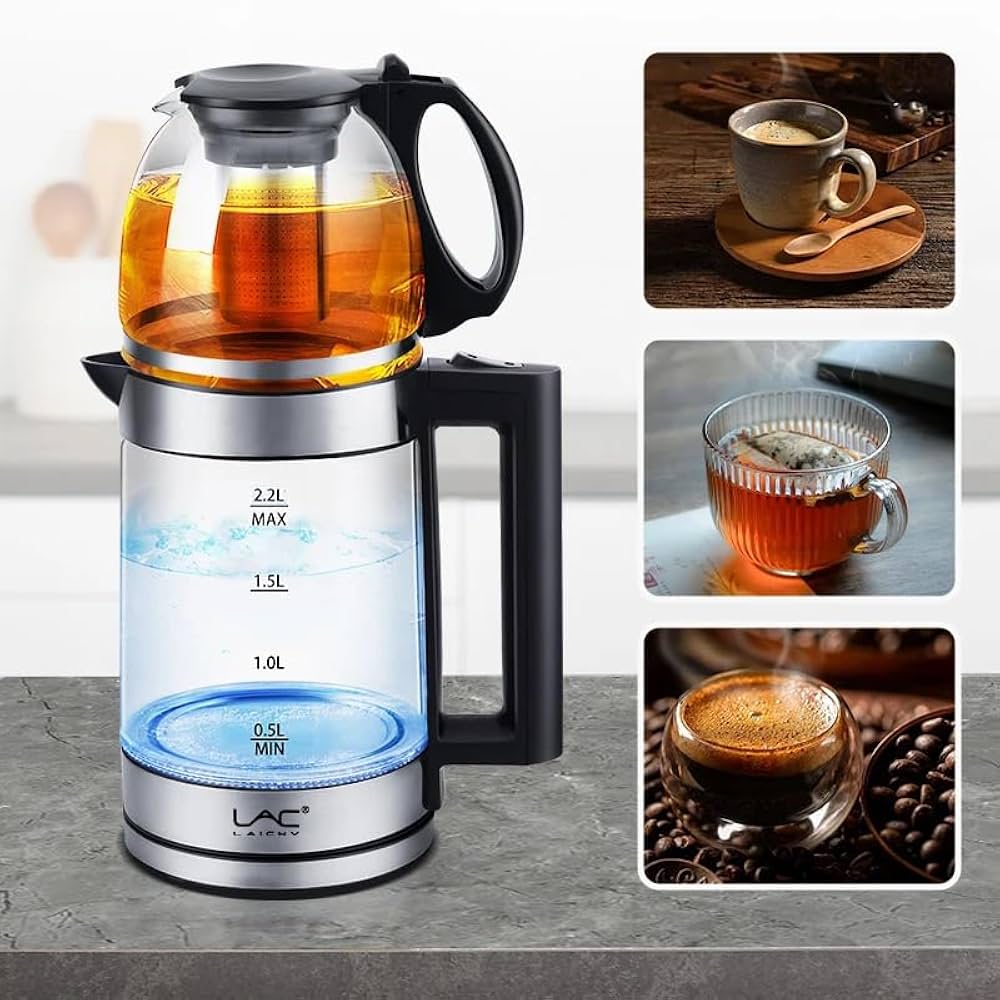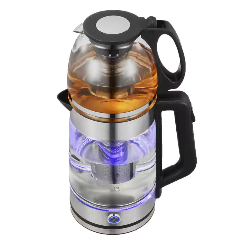 غلاية كهربائية سعة 2 لتر مع إبريق شاي بخار سعة 0.8 لتر