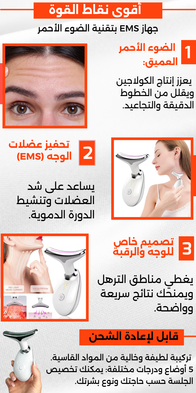 جهاز تدليك الوجه والرقبة LED القابل لإعادة الشحن