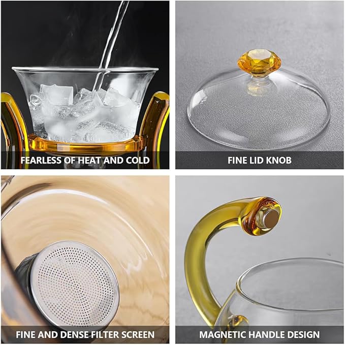 طقم شاي مقاوم، إبريق شاي زجاجي نصف أوتوماتيكي