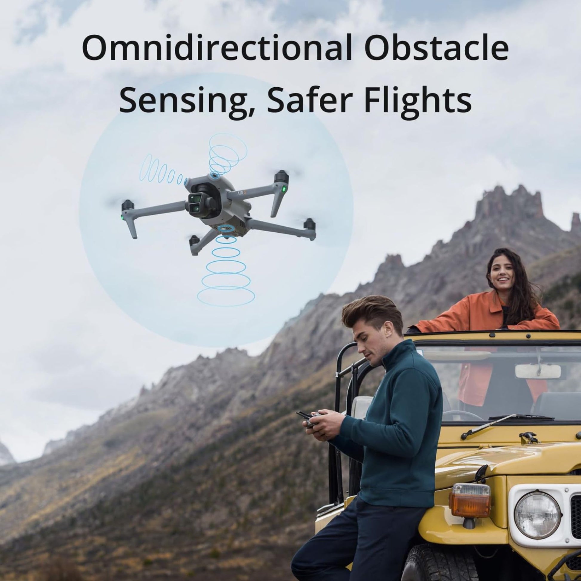 The Air 3S features forward-facing LiDAR sensors, which enhance nighttime flying and improve obstacle detection. Integrated into both the omnidirectional APAS avoidance system and the Smart Return-to-Home (RTH) function, this sensor allows the Air 3S to navigate safely even in low visibility, giving you peace of mind during complex flights.